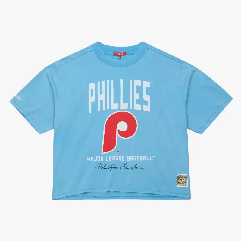 Women’s Philadelphia Phillies Mitchell & Ness Light Blue Cooperstown Cropped Boxy T-Shirt