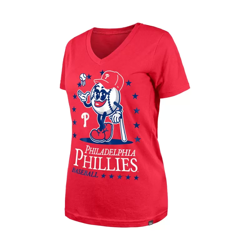 Women’s Philadelphia Phillies New Era Red Little Miss 2 V-Neck T-Shirt