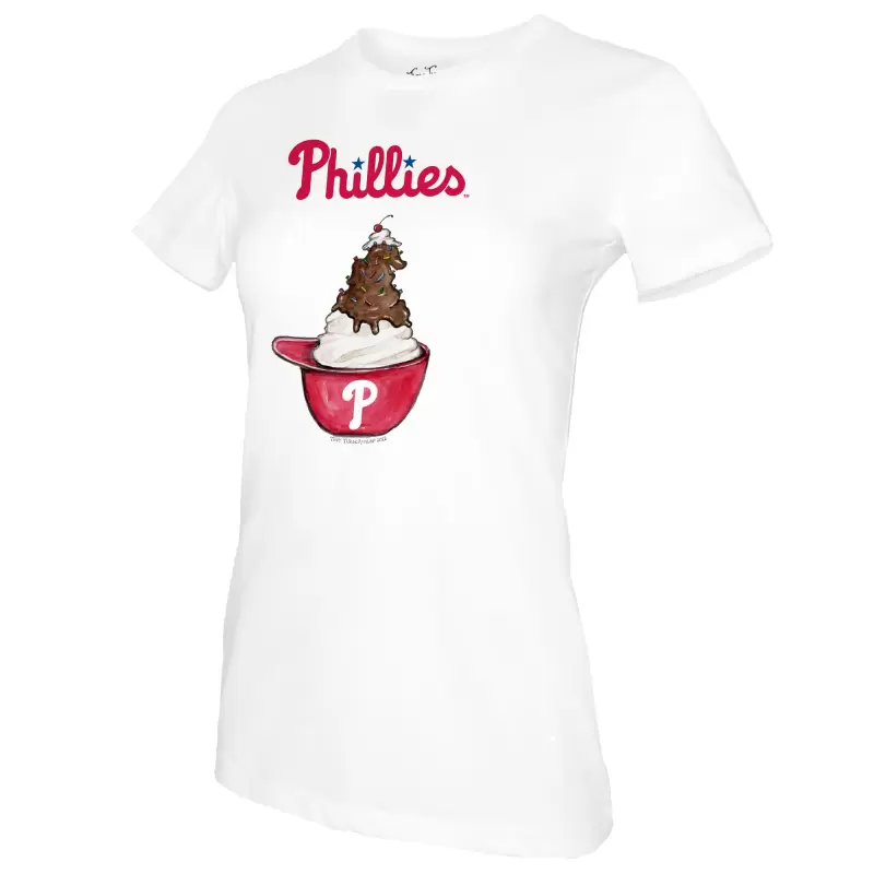 Women’s Philadelphia Phillies Tiny Turnip White Sundae Helmet T-Shirt