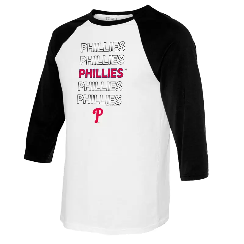 Women’s Philadelphia Phillies Tiny Turnip White/Black Stacked 3/4-Sleeve Raglan T-Shirt