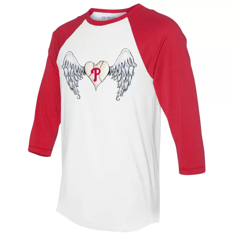 Women’s Philadelphia Phillies Tiny Turnip White/Red Angel Wings 3/4-Sleeve Raglan T-Shirt