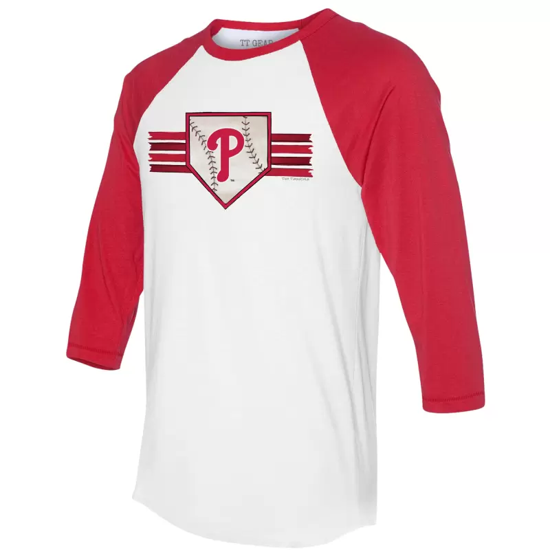 Women’s Philadelphia Phillies Tiny Turnip White/Red Base Stripe 3/4-Sleeve Raglan T-Shirt