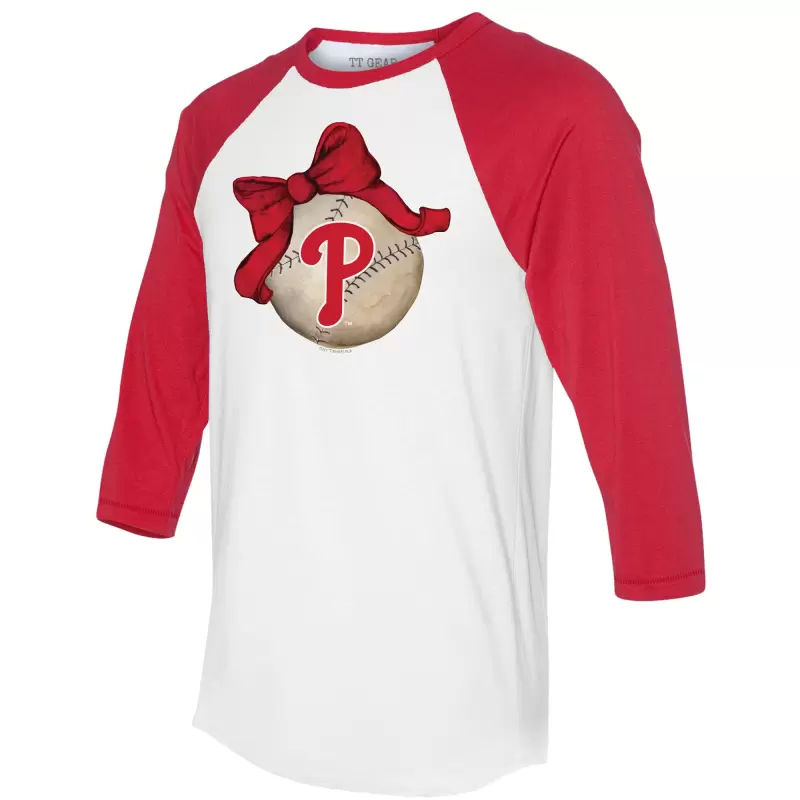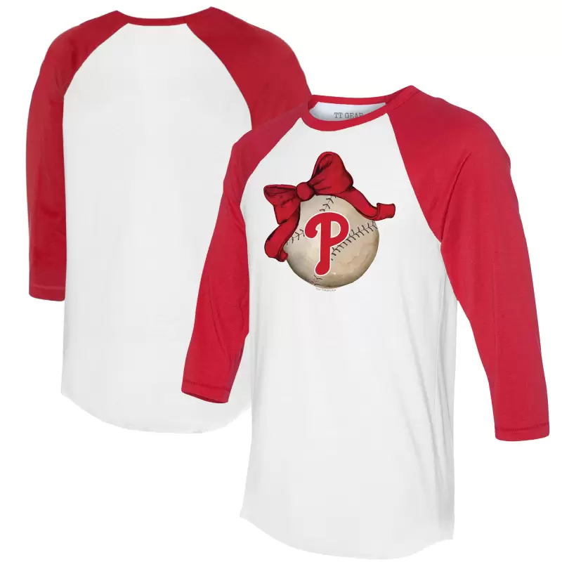 Women’s Philadelphia Phillies Tiny Turnip White/Red Baseball Bow 3/4-Sleeve Raglan T-Shirt