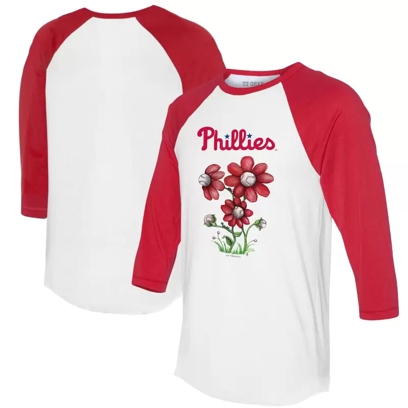Women’s Philadelphia Phillies Tiny Turnip White/Red Blooming Baseballs 3/4-Sleeve Raglan T-Shirt