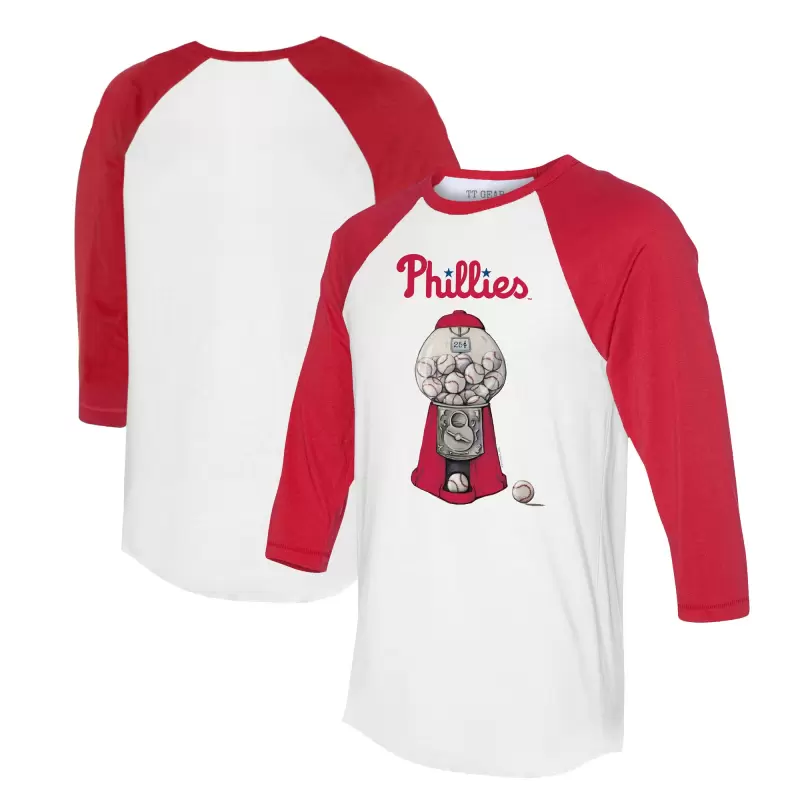 Women’s Philadelphia Phillies Tiny Turnip White/Red Gumball Machine 3/4-Sleeve Raglan T-Shirt