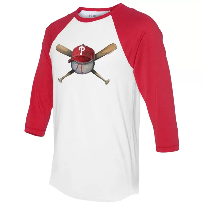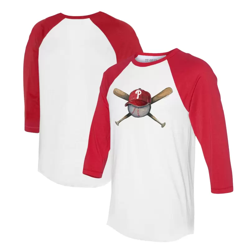 Women’s Philadelphia Phillies Tiny Turnip White/Red Hat Crossbats 3/4-Sleeve Raglan T-Shirt