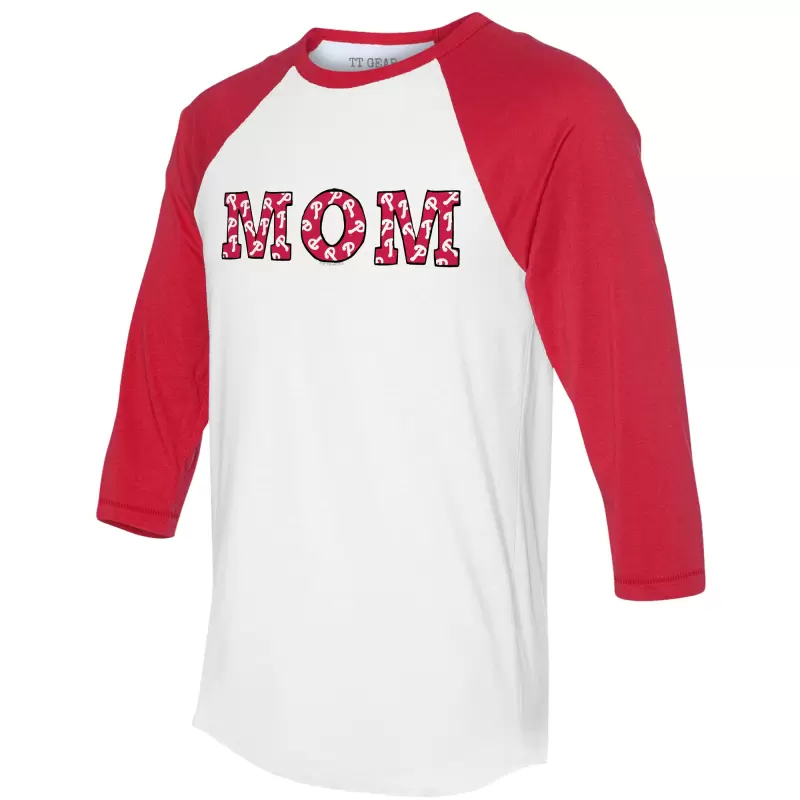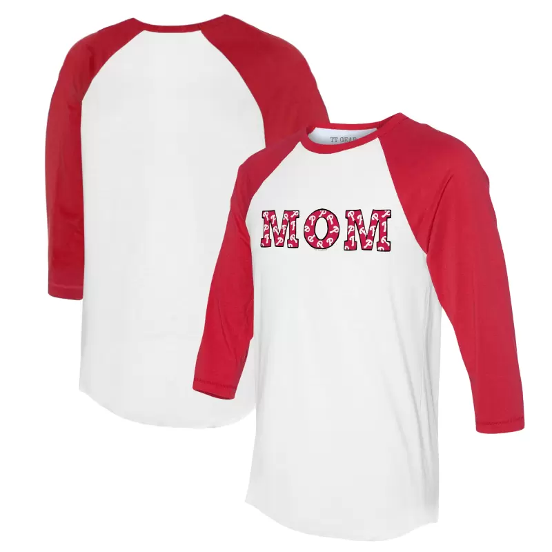Women’s Philadelphia Phillies Tiny Turnip White/Red Logo Mom 3/4-Sleeve Raglan T-Shirt