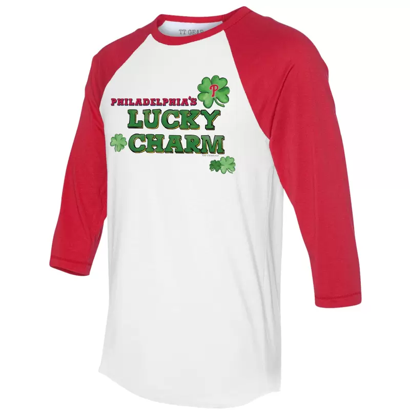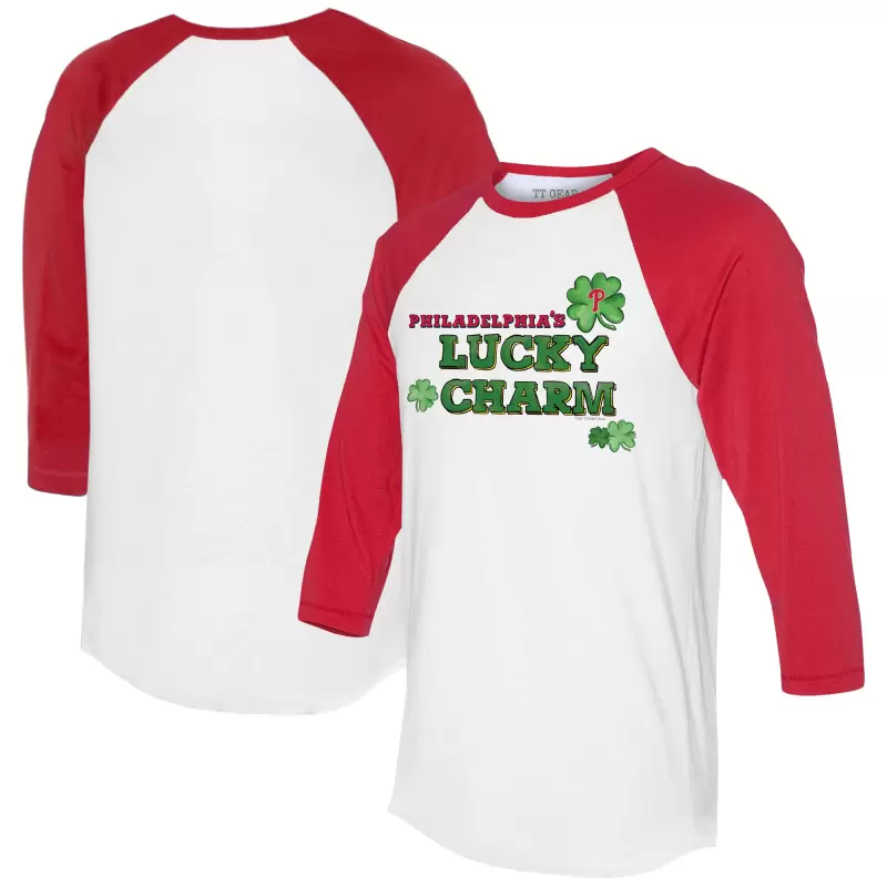 Women’s Philadelphia Phillies Tiny Turnip White/Red Lucky Charm 3/4-Sleeve Raglan T-Shirt