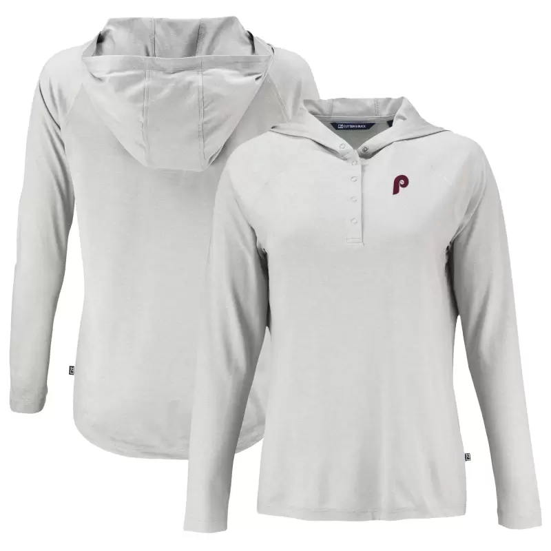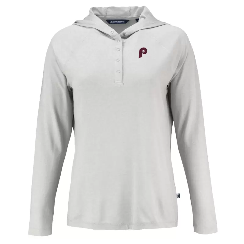 Women’s Philadelphia Phillies Cutter & Buck Gray Cooperstown Collection Coastline Epic Comfort Eco Recycled Hoodie Raglan Long Sleeve T-Shirt