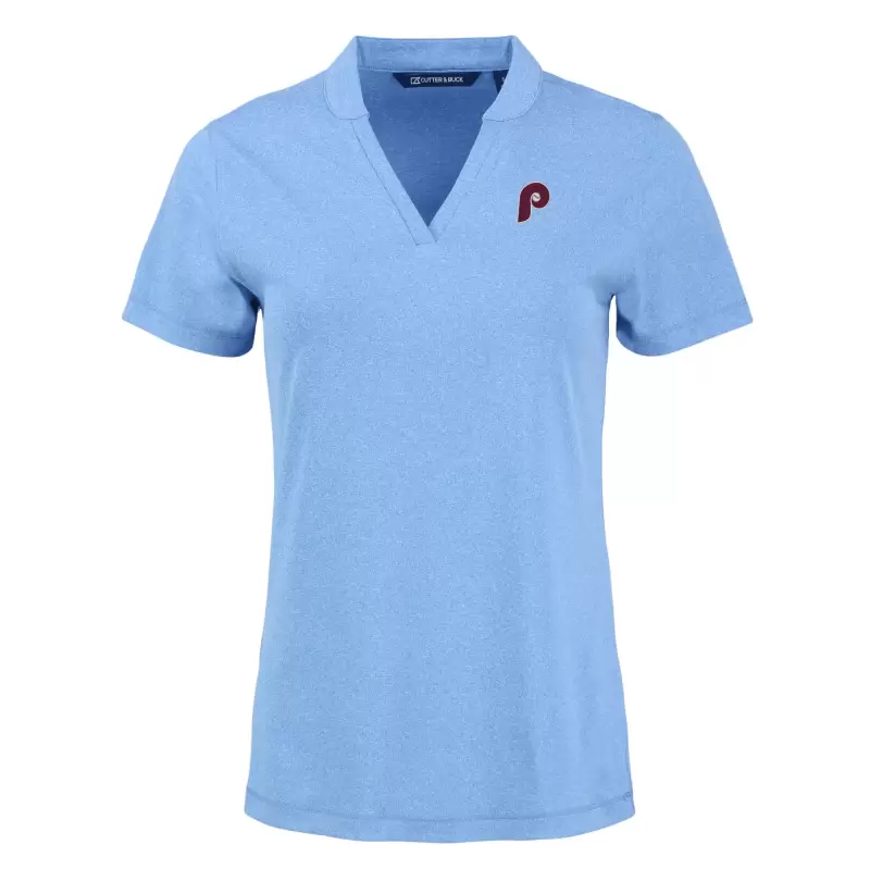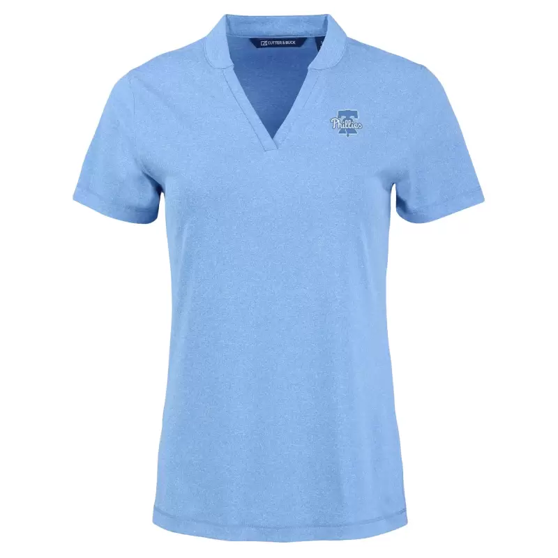 Women’s Philadelphia Phillies Cutter & Buck Heather Light Blue Forge Stretch Blade DryTec V-Neck Polo