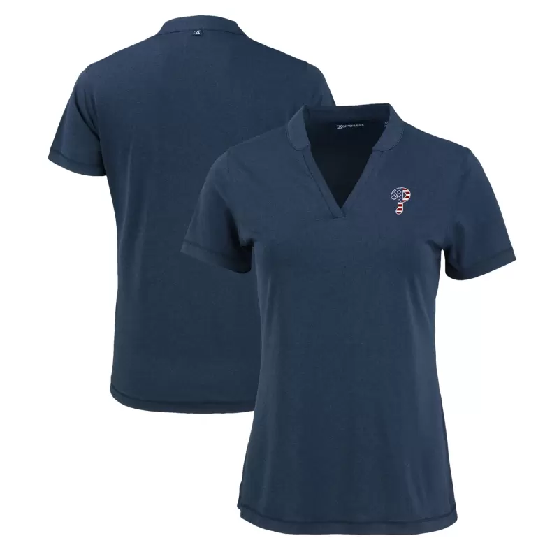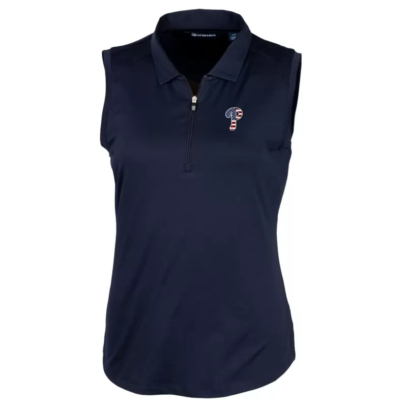 Women’s Philadelphia Phillies Cutter & Buck Navy Americana Logo DryTec Forge Stretch Sleeveless Polo