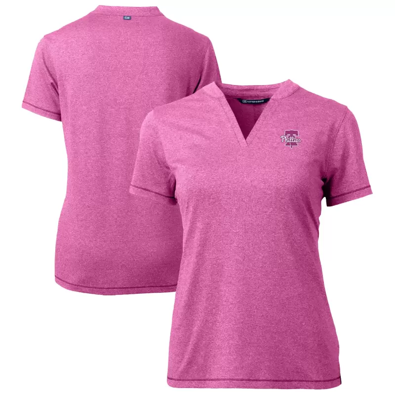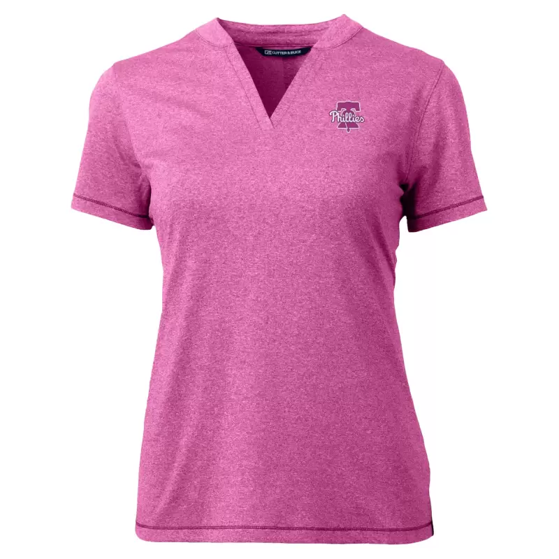 Women’s Philadelphia Phillies Cutter & Buck Light Pink Forge Heathered Stretch Blade Top