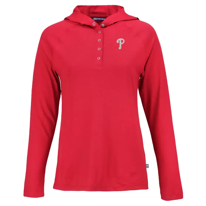 Women’s Philadelphia Phillies Cutter & Buck Red Coastline Epic Comfort Eco Recycled Hoodie Raglan Long Sleeve T-Shirt