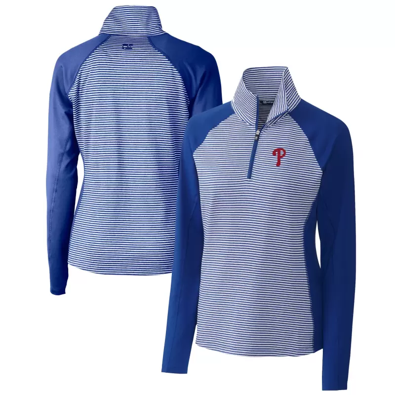 Women’s Philadelphia Phillies Cutter & Buck Royal DryTec Forge Tonal Stripe Half-Zip Top
