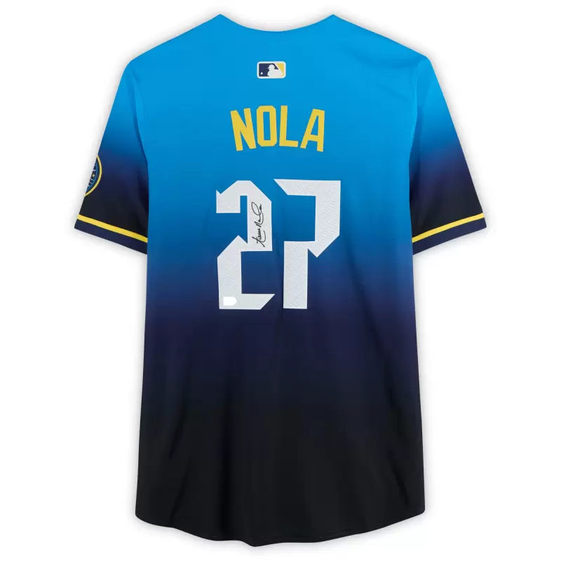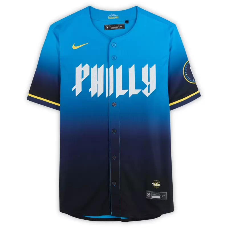 Elevate your collection of Philadelphia Phillies memorabilia with this Aaron Nola autographed Light Blue City Connect Limited Jersey. With eye-catching team details and distinct signature of the MLB star, there’s no better way to commemorate one of your favorite players in the sport. Obtained under the auspices of Major League Baseball, it also includes an individually numbered, tamper-evident hologram that can be verified online to certify its authenticity.