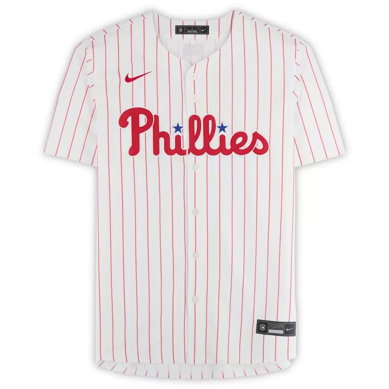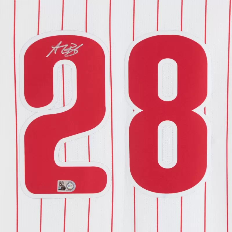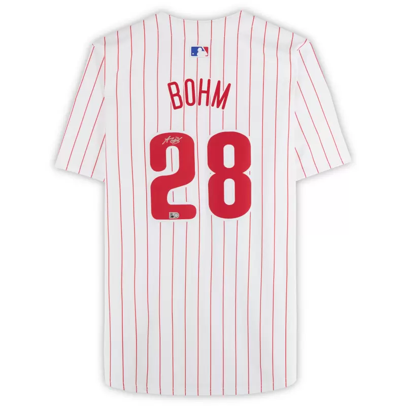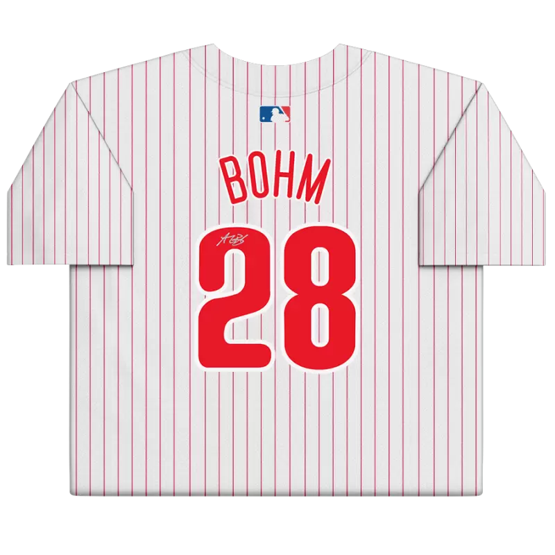 Elevate your collection of Philadelphia Phillies memorabilia with this Alec Bohm autographed White Nike Limited Jersey. With eye-catching team details and distinct signature of the MLB star, there’s no better way to commemorate one of your favorite players in the sport. Obtained under the auspices of Major League Baseball, it also includes an individually numbered, tamper-evident hologram that can be verified online to certify its authenticity.
