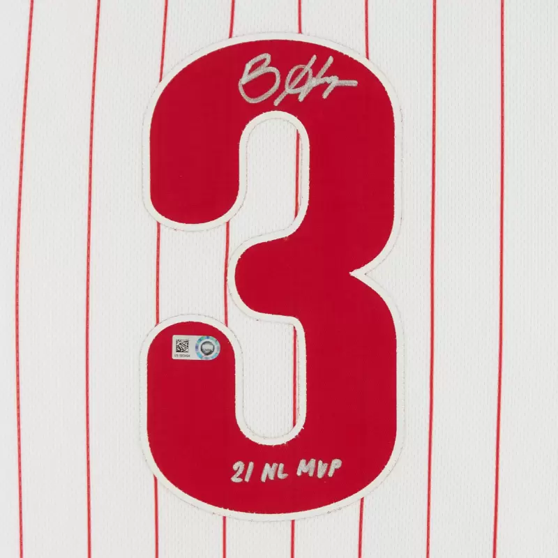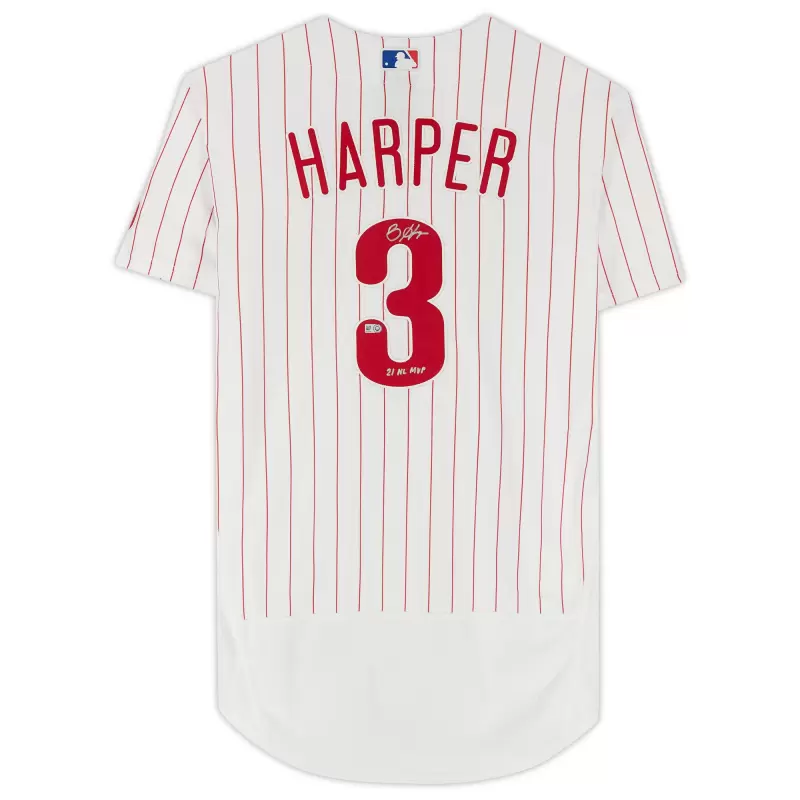 Bryce Harper had his best season to date with the Philadelphia Phillies in 2021, as he led the team in just about every offensive stat on his way to his second NL MVP award. Celebrate his incredible year in style with this autographed Bryce Harper Philadelphia Phillies Nike Authentic Jersey. Along with his unique signature, this jersey comes complete with a hand-written inscription. Display this in your home or office for the ultimate piece of Phillies memorabilia.