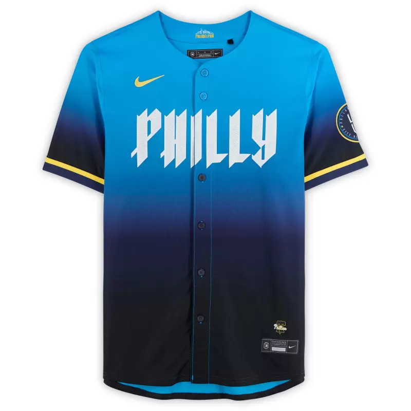 Elevate your collection of Philadelphia Phillies memorabilia with this Bryce Harper autographed Light Blue City Connect Limited Jersey. With eye-catching team details and the two-time NL MVP’s distinct signature, there’s no better way to commemorate one of your favorite players in the sport. Obtained under the auspices of Major League Baseball, it also includes an individually numbered, tamper-evident hologram that can be verified online to certify its authenticity.