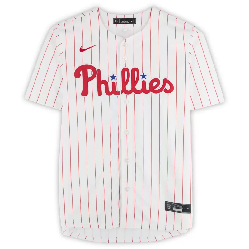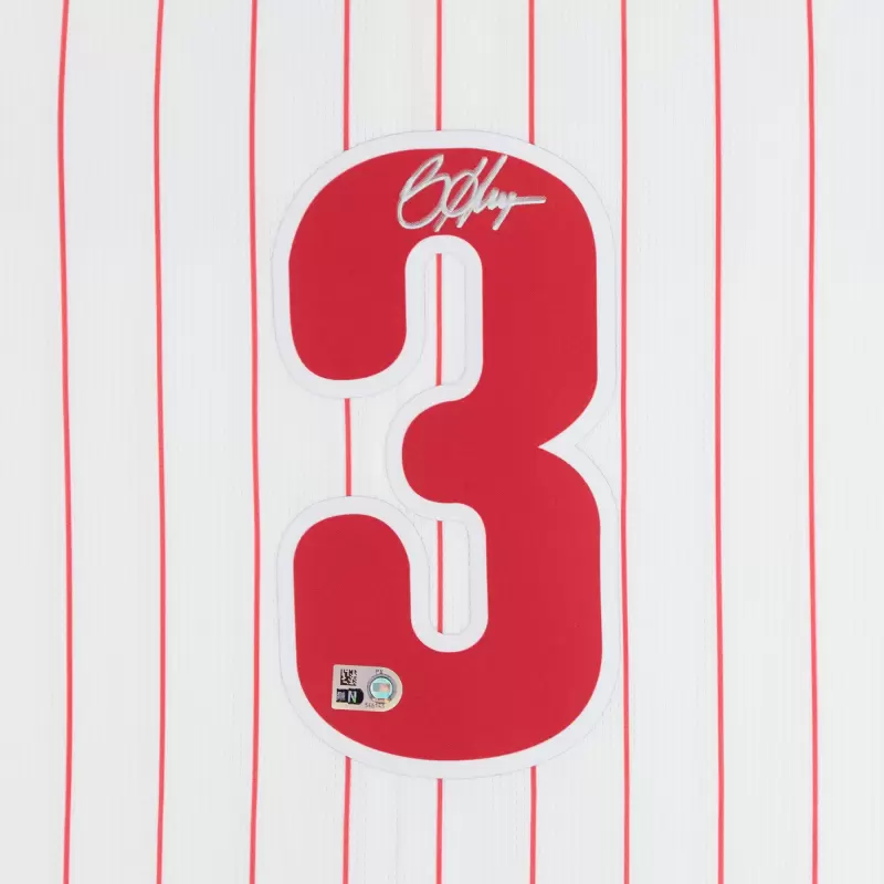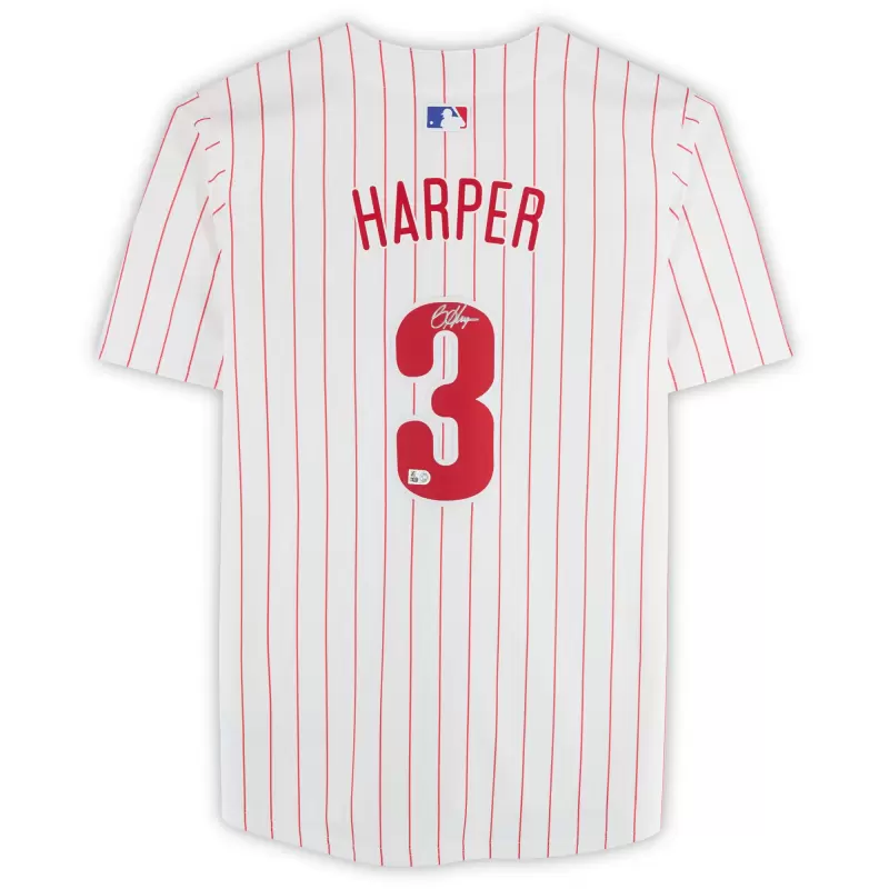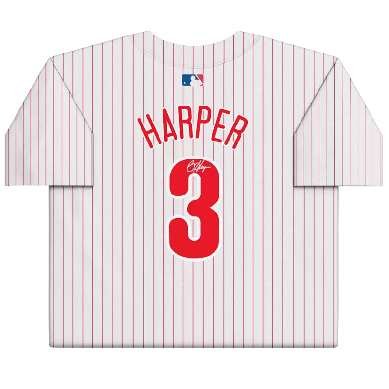 Elevate your collection of Philadelphia Phillies memorabilia with this Bryce Harper autographed White Nike Limited Jersey. With eye-catching team details and the two-time NL MVP’s distinct signature, there’s no better way to commemorate one of your favorite players in the sport. Obtained under the auspices of Major League Baseball, it also includes an individually numbered, tamper-evident hologram that can be verified online to certify its authenticity.