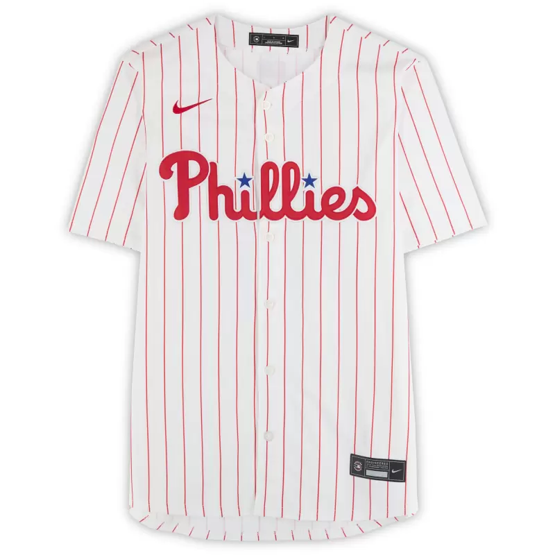 Elevate your collection of Philadelphia Phillies memorabilia with this Bryson Stott autographed White Nike Limited Jersey. With eye-catching team details and distinct signature of the MLB star, there’s no better way to commemorate one of your favorite players in the sport. Obtained under the auspices of Major League Baseball, it also includes an individually numbered, tamper-evident hologram that can be verified online to certify its authenticity.