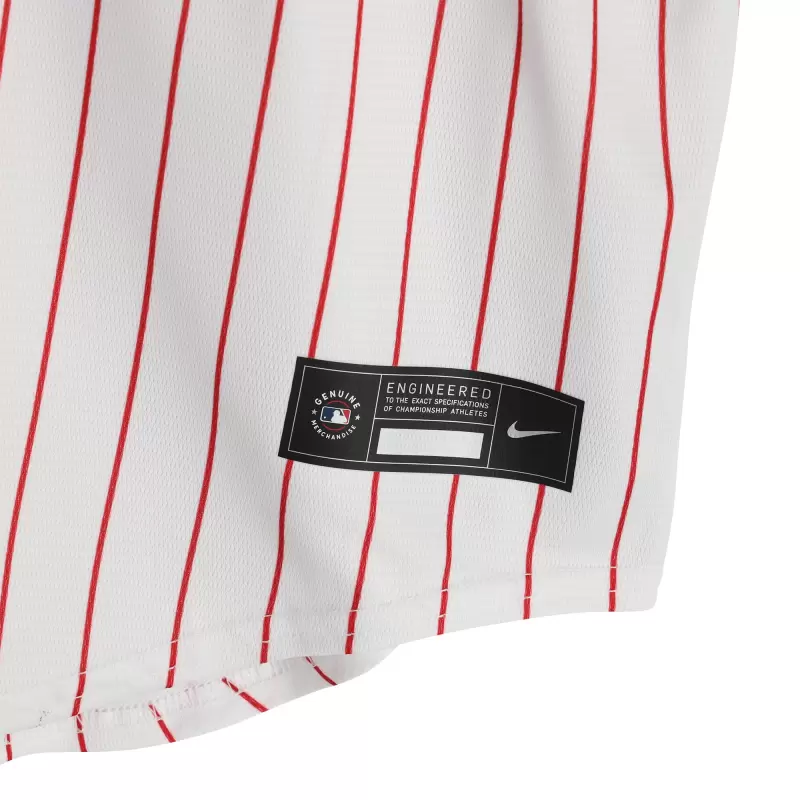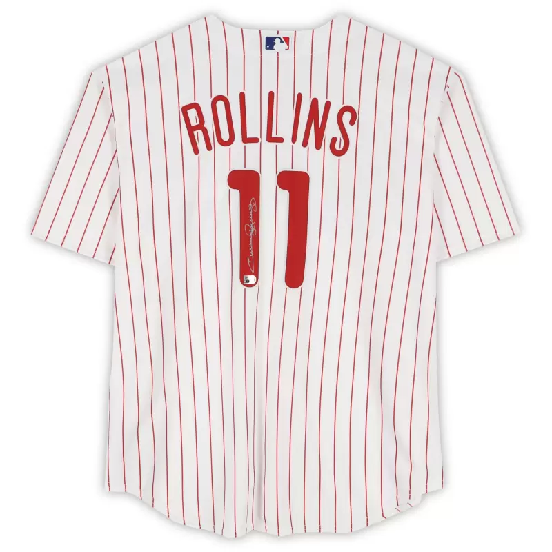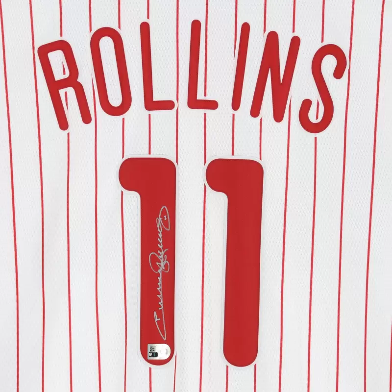 Elevate your collection of Philadelphia Phillies memorabilia with this Jimmy Rollins autographed White Nike Replica Jersey. With eye-catching team details and the 2007 NL MVP’s distinct signature, there’s no better way to commemorate one of your favorite players in the history of the sport. Obtained under the auspices of Major League Baseball, it also includes an individually numbered, tamper-evident hologram that can be verified online to certify its authenticity.