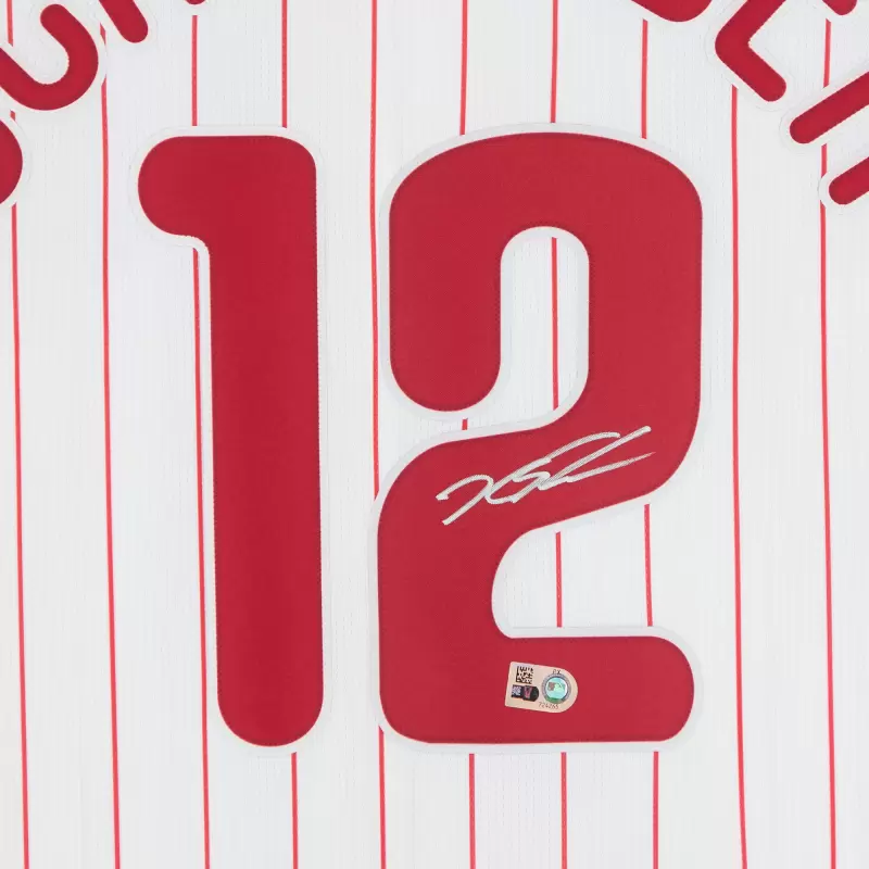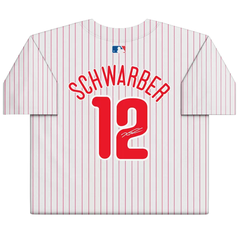 Elevate your collection of Philadelphia Phillies memorabilia with this Kyle Schwarber autographed White Nike Replica Jersey. It features eye-catching team details and a distinct signature from the star outfielder. Obtained under the auspices of Major League Baseball, this collectible includes an individually numbered, tamper-evident hologram that can be verified online to certify authenticity.