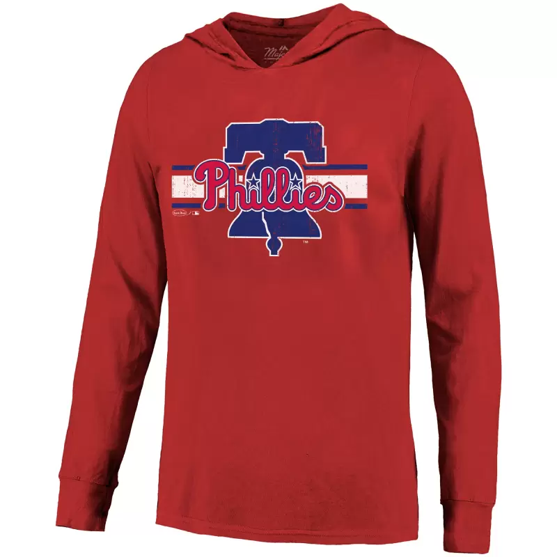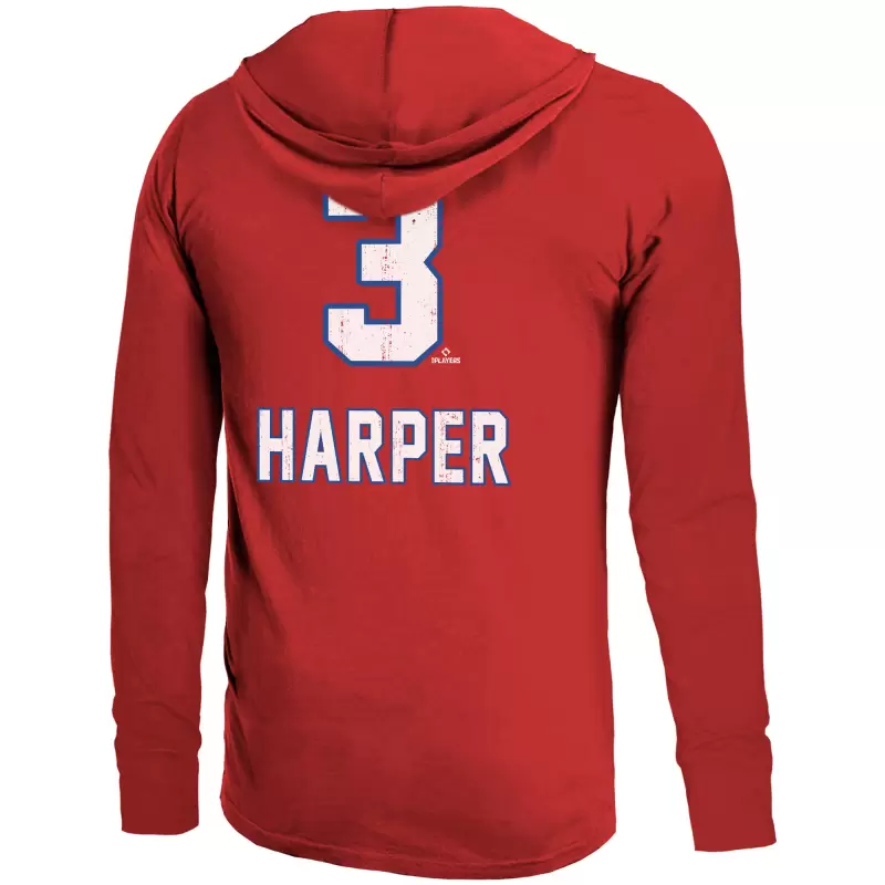 Show your support for one of the brightest stars in baseball with this Bryce Harper Lightweight Name & Number Hoodie from Majestic Threads. The lightweight cotton material stays breathable and comfortable throughout the day while the rib-knit cuffs provide a snug fit and durable stretch. The distressed team and player graphics add a vintage appearance that looks worn in from your very first wear, making this a perfect way to show your support for the face of the Philadelphia Phillies.