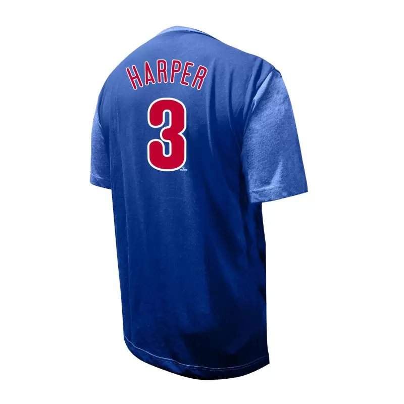 Cheer on your Philadelphia Phillies with this Bryce Harper Big & Tall Name & Number T-Shirt from Profile. This 100% cotton tee features a rib-knit, tagless collar with interior taping for a more comfortable feel. Plus, the stacked screen print team graphics on the front, along with Bryce Harper’s name and number on the back, make it clear you’re here to celebrate one of baseball’s most exciting young stars.