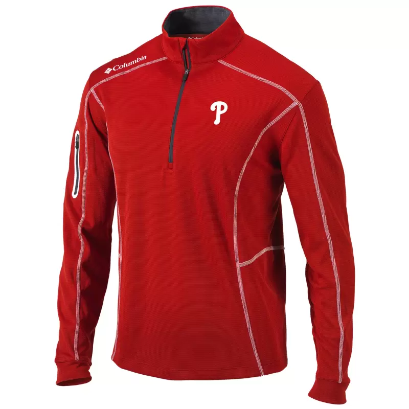 The Men’s Columbia Red Philadelphia Phillies Shotgun Omni-Wick Quarter-Zip Pullover Jacket is the perfect way to show your support for the Philadelphia Phillies. Made from moisture-wicking polyester, this jacket will keep you comfortable and dry all game long. The heat-sealed graphics and self-fabric collar with collar stand add a touch of style, while the two-button placket makes it easy to get on and off. Whether you’re cheering on the Phillies at the stadium or just relaxing at home, this jacket is a must-have for any fan.