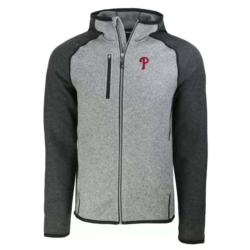 Men’s Philadelphia Phillies Cutter & Buck Heather Charcoal/Heather Gray Mainsail Full-Zip Hooded Jacket