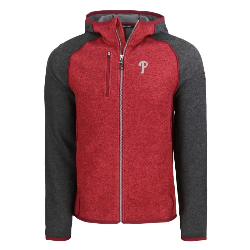Stay warm and show your Philadelphia Phillies pride with this Cutter & Buck Mainsail Full-Zip Hooded Jacket. This midweight hoodie is perfect for cooler days, with a brushed fleece interior and tonal satin top stitching. The embroidered Philadelphia Phillies graphics show your team spirit, while the zippered pockets keep your belongings secure. Whether you’re at Citizens Bank Park or watching from home, this jacket will keep you warm and stylish while you cheer on the Phillies.
