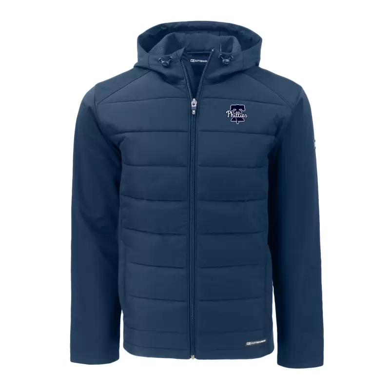 Channel your inner Philadelphia Phillies fan with this Evoke Hybrid Eco Softshell Recycled Full-Zip Hooded PrimaLoft Jacket from Cutter & Buck. This Philadelphia Phillies jacket is made from 100% recycled polyester and boasts a water-resistant finish, making it both eco-friendly and ready for whatever weather comes your way. The fleece interior, enhanced with PrimaLoft® Insulation, provides exceptional warmth and comfort without sacrificing breathability, making it perfect for moderate temperatures.