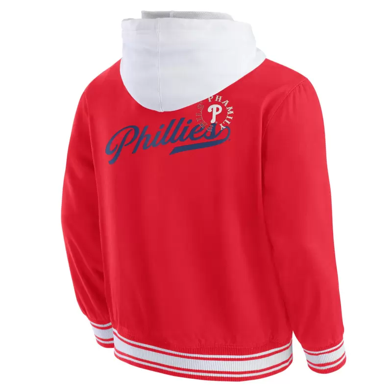 Channel your inner pride with this Darius Rucker Collection by Fanatics Philadelphia Phillies Full-Snap Hooded Jacket. This stylish Philadelphia Phillies jacket features a comfortable cotton construction and a classic full-snap design. Rib-knit cuffs and a hem with stripe details provide a snug and sporty look, while the adjustable drawstring hood offers added warmth and coverage when you need it.