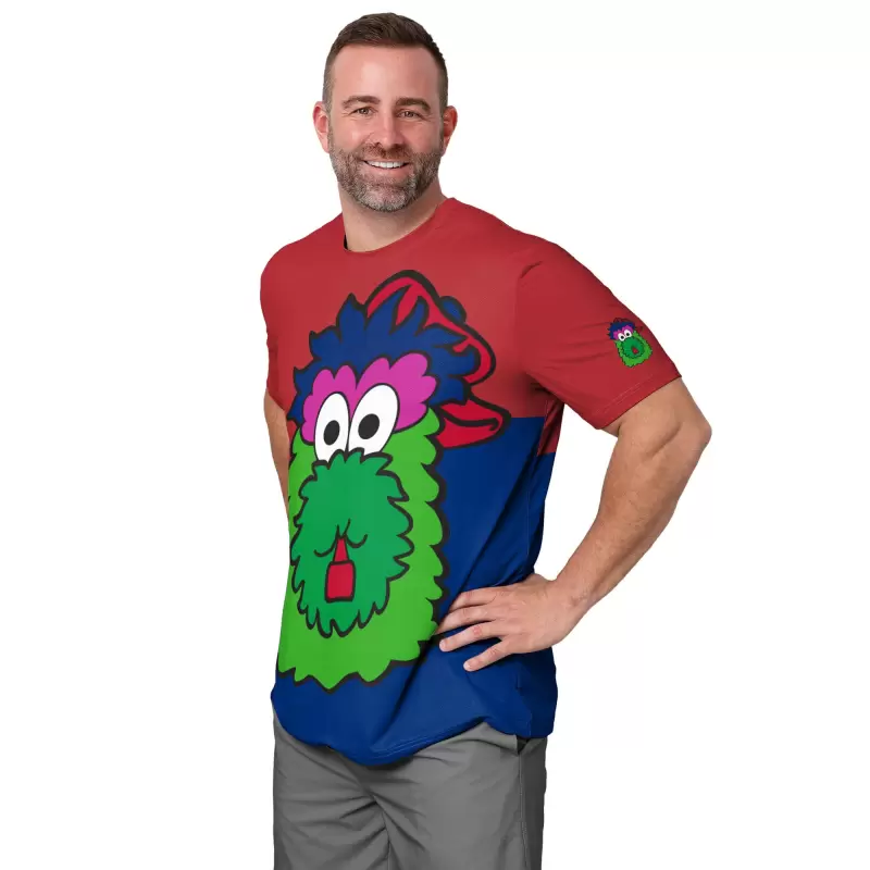 Rep your Philadelphia Phillies pride with this bold and fun Big Logo Mascot T-Shirt from FOCO. Made from 100% polyester, this tee features sublimated graphics of your Philadelphia Phillies on the front and left sleeve for a bold statement. Its classic crew neck design and soft fabric ensure a comfortable fit for all-day wear.