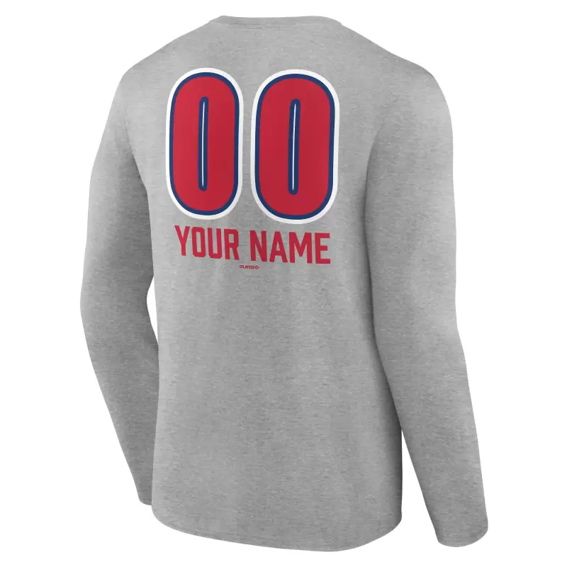 We want fans to celebrate their fandom by customizing and personalizing certain products. For these customizable products, including jerseys, we invite customers to tell us how they would like their preferred name or other text to appear by typing that text into the field indicated. However, just because a customer is able to type proposed customization text into the field and is able to complete the order through the website, not all proposed customization text will be accepted. Please note, Fanatics may reject and cancel any customization order for any reason, including for messages that are deemed offensive or inappropriate. Gear up for the next Philadelphia Phillies game day with this Personalized Name & Number Fastball Long Sleeve T-Shirt. Its classic design and soft fabric ensure comfort with every wear. Eye-catching Philadelphia Phillies graphics on the front highlight your fandom while the customized back lets everyone know you’re a tried and true fan.
