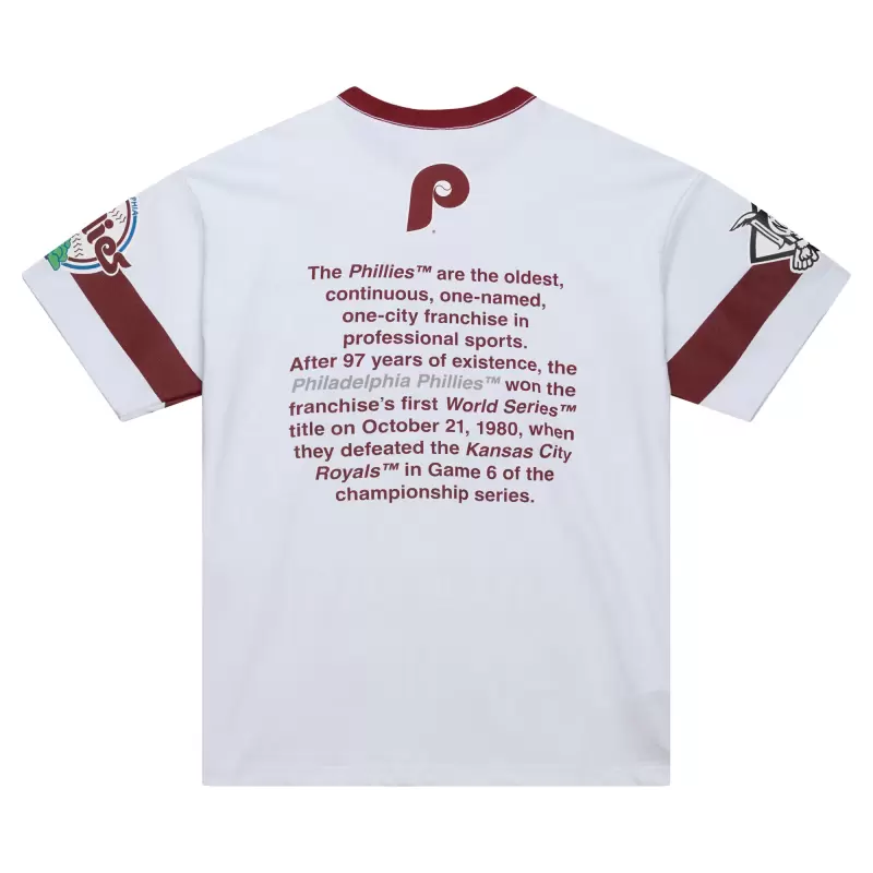 Celebrate the past while looking to the future in this Philadelphia Phillies Cooperstown Collection Team Origins Premium T-Shirt. Designed by Mitchell & Ness, it features bold graphics highlighting vintage style and franchise history from every angle. This eye-catching tee is a proud statement of Philadelphia Phillies pride and an essential pickup for any serious fan.
