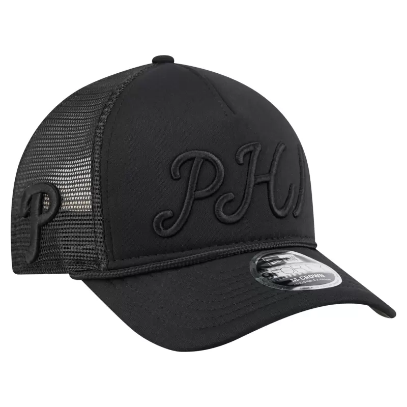 Men’s Philadelphia Phillies New Era Black City Initial 9FORTY A-Frame M-Crown Adjustable Trucker Hat