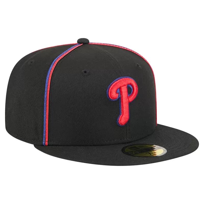 As the ball leaves the yard, put your Philadelphia Phillies pride on full display with this Soutache Fitted Hat from New Era. With its classic construction, the 59FIFTY is the originator of the true fitted cap. The embroidered graphics with raised details pop against the crown, as team-colored trim on the panels makes it the perfect way to show off your team pride in style.