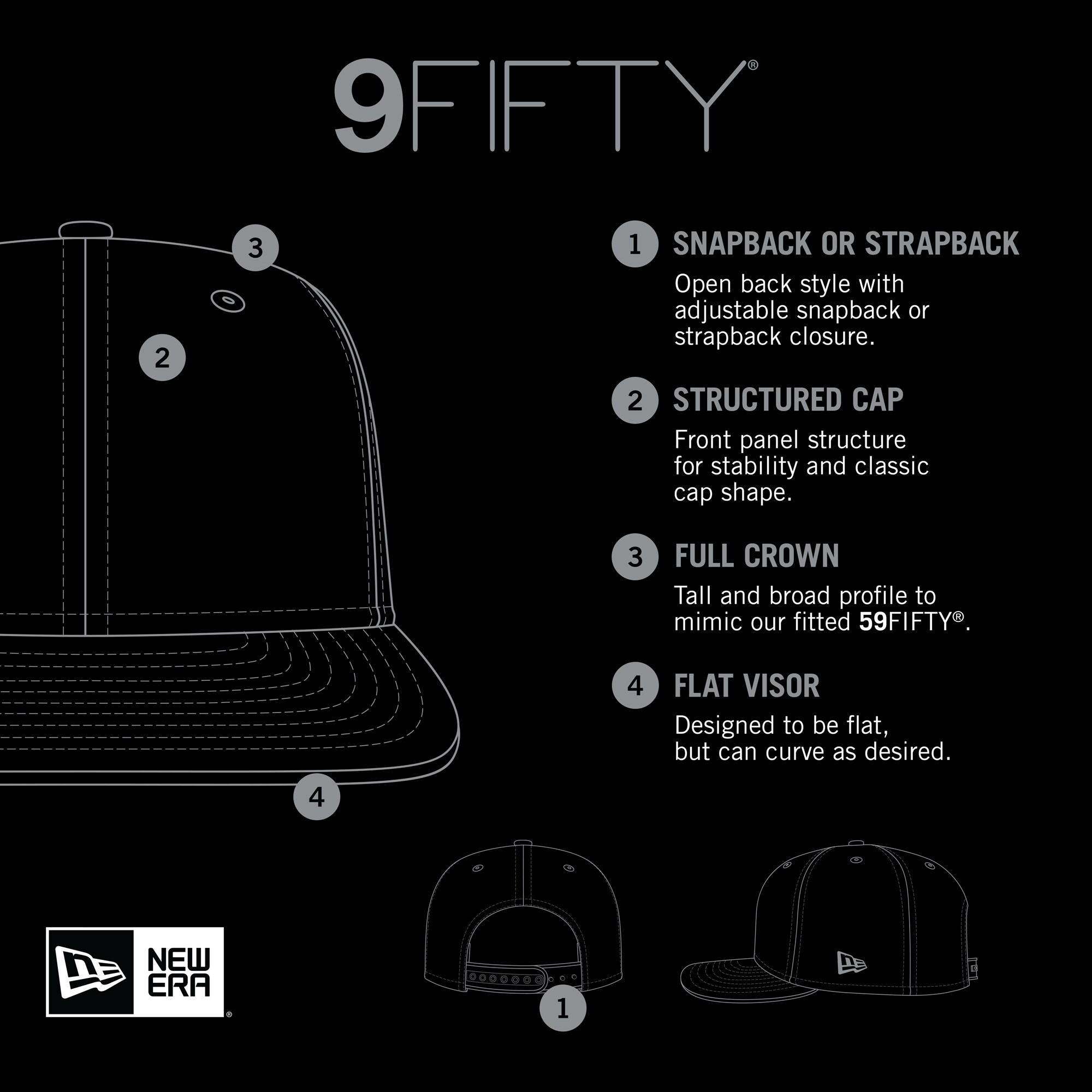 - The 9FIFTY is New Era’s classic snapback style, with the same shape as the 59FIFTY but an open back and an adjustable snapback closure