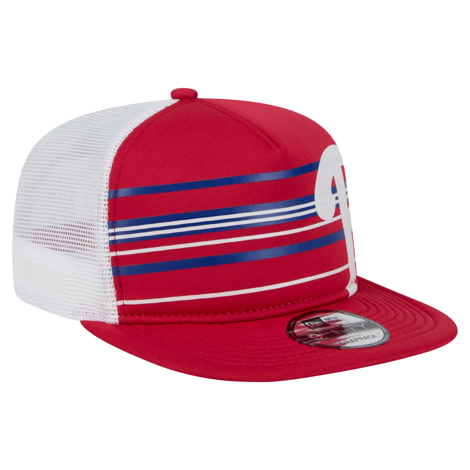 Show off your Philadelphia Phillies pride with this New Era 9FIFTY A-Frame Trucker Snapback Hat. It features a classic snapback style with a high-profile pinched crown and single-panel front, providing a timeless and stylish look. With a solid front panel and mesh mid and rear panels, this Philadelphia Phillies hat offers breathability and comfort, making it perfect for all-day wear.