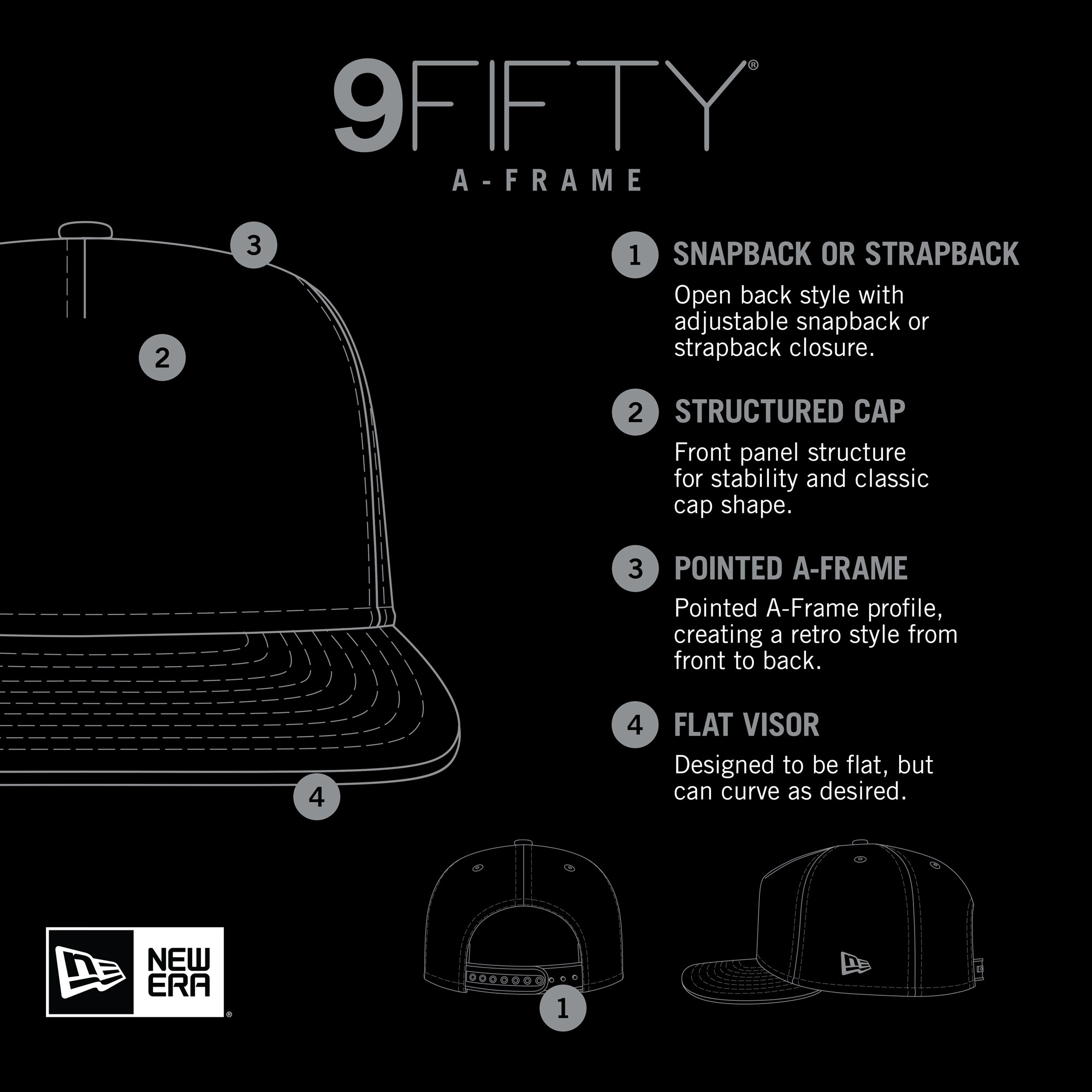 • The 9FIFTY A-Frame is a classic snapback style with a high-profile pinched crown and single-panel front