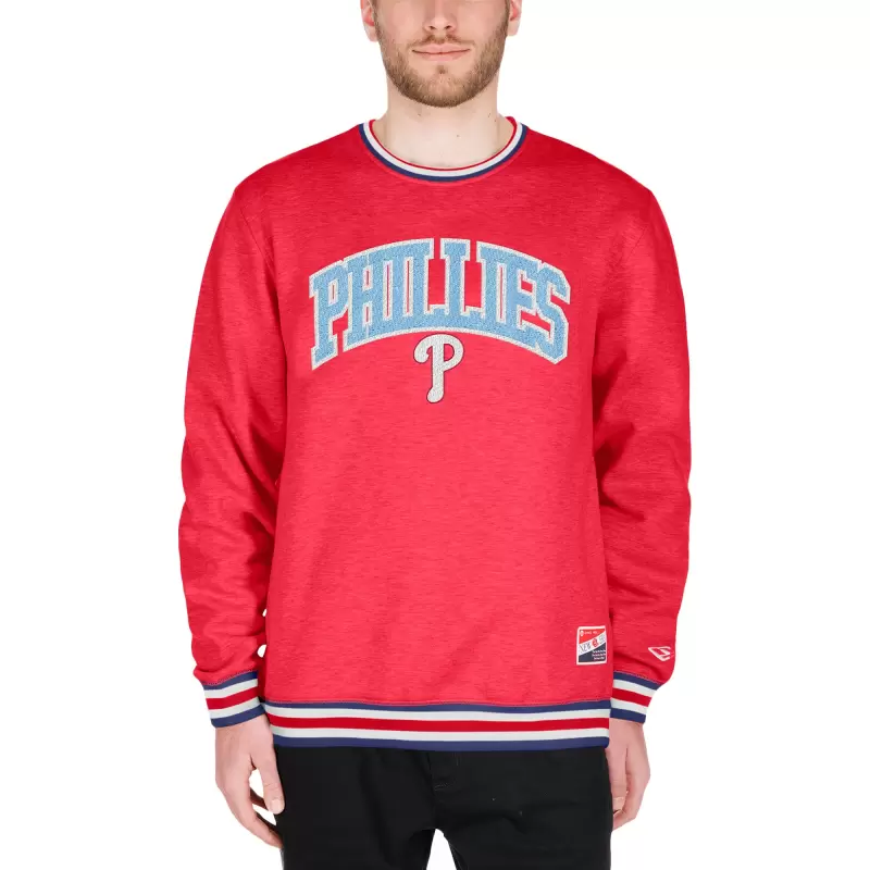 Stay warm and show off your team pride with this Philadelphia Phillies Pullover Sweatshirt from New Era. The fleece lining provides a cozy feel, perfect for cooler weather, while the rib-knit cuffs and waistband offer a snug and comfortable fit. Team colors and embroidered fabric appliques boldly display your fandom for all to see.
