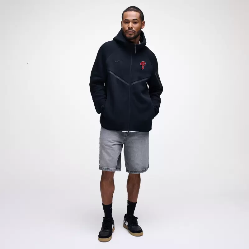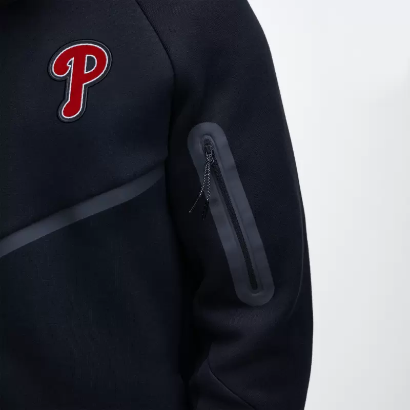 Nike’s dedication to athletic innovation meets Philadelphia Phillies pride in this premium Tech Full-Zip Windrunner Hoodie. The world’s leading designer, marketer and distributor of authentic athletic footwear, apparel, equipment and accessories combines high-end comfort with an unmistakable sports aesthetic. Crafted from smooth, double-sided Tech Fleece with Move To Zero (50% Recycled) fabric, this midweight hoodie delivers top-tier softness and warmth without excess bulk. With a relaxed standard fit for effortless layering and signature zippered sleeve pocket, this is not your run-of-the-mill outerwear; it’s a flex for the discerning Philadelphia Phillies fan. Score big on style points and elevate your game-day fits.
