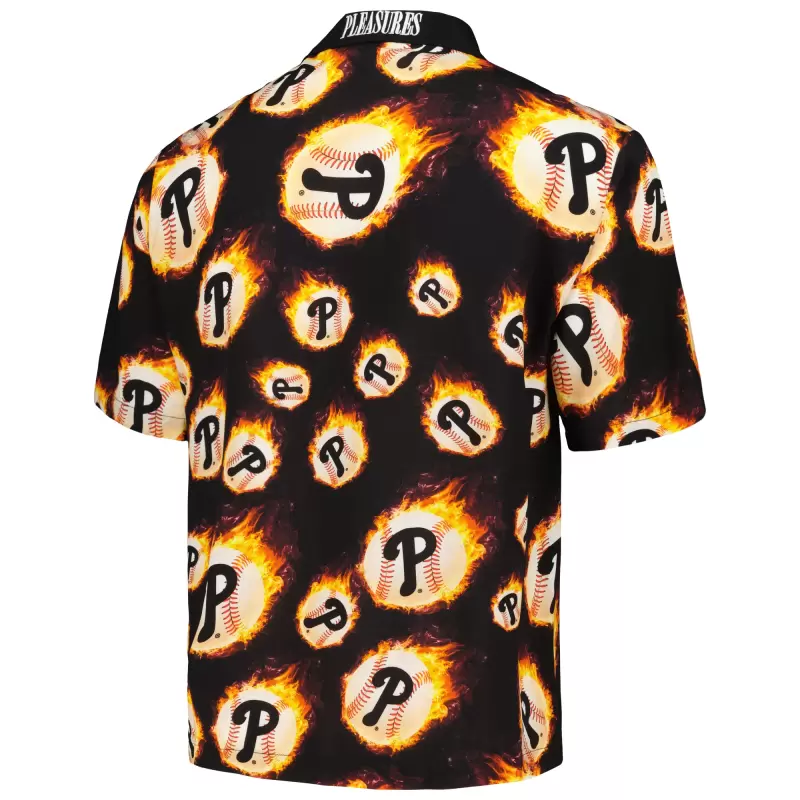Home / Shop / Abc / Men’s Philadelphia Phillies PLEASURES Black Flame Fireball Button-Up Shirt