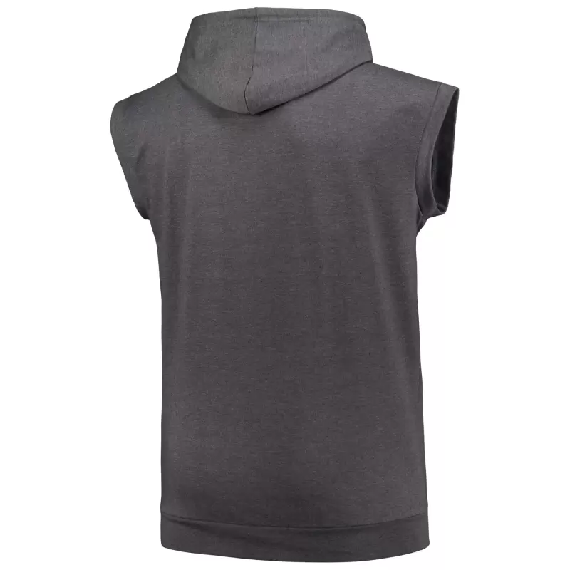 Enjoy the look of a pullover without the heavyweight feel in this Philadelphia Phillies Muscle hoodie. Its sleeveless design by Profile allows for optimal arm movement, while fleece lining provides cozy warmth. Philadelphia Phillies graphics printed on blended material ensure everyone knows which ball club you root for on game day.