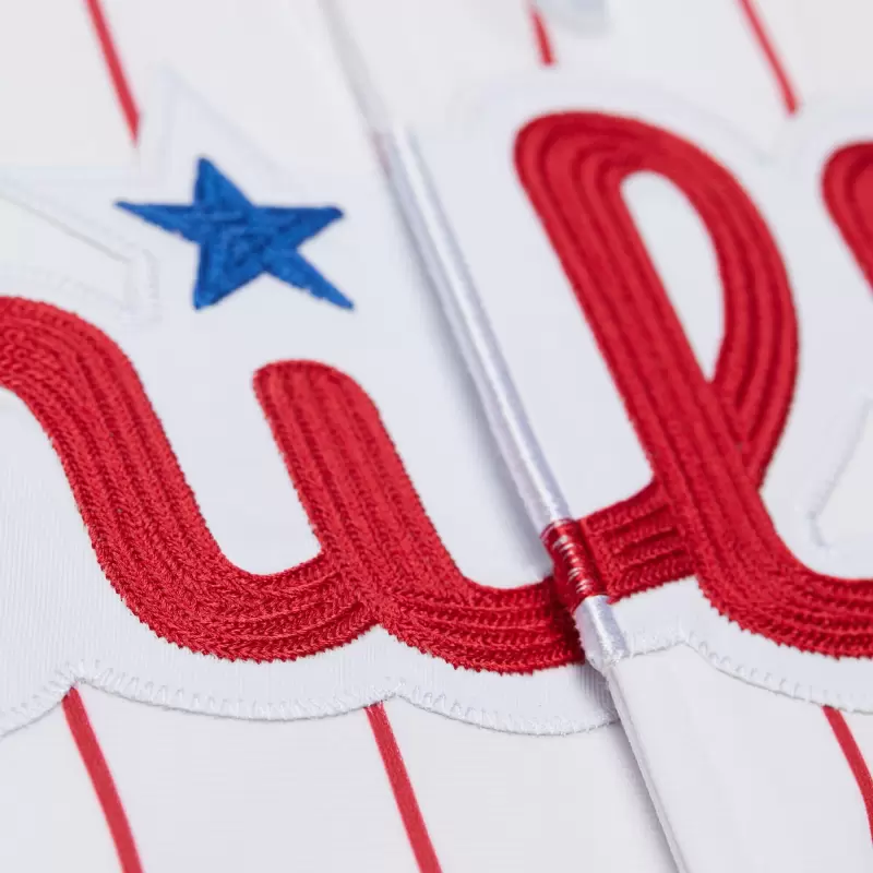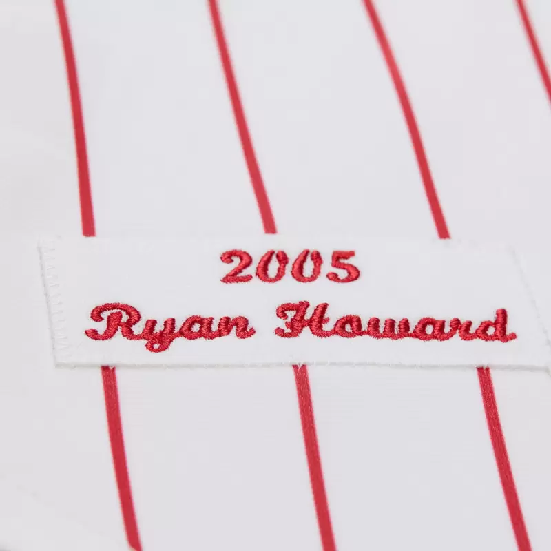 Rep your favorite Philadelphia Phillies legend for all 162 games with this Ryan Howard Mitchell & Ness Cooperstown Collection Authentic Jersey. Featuring that classic Authentic Jersey fit and feet, you’ll remain comfortable through the whole game. The embroidered fabric applique Philadelphia Phillies graphics will complete your perfect fit for the ballpark.