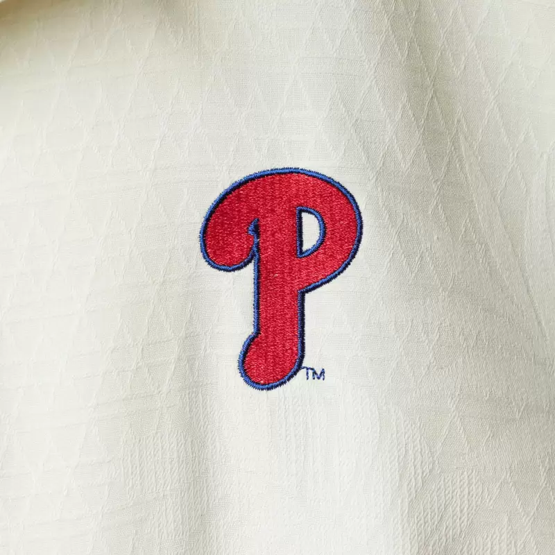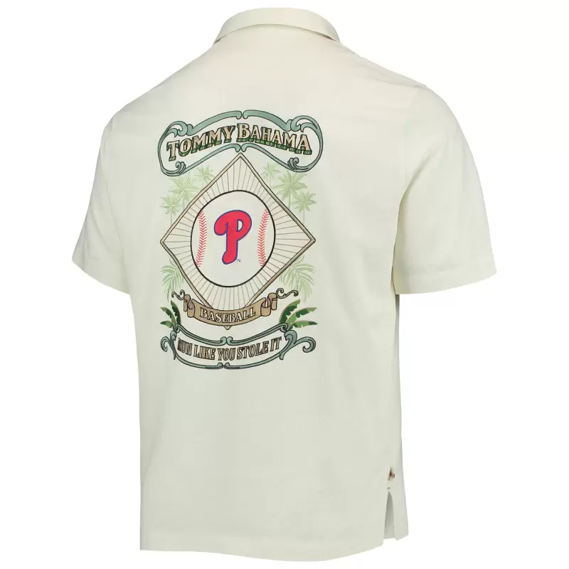 The Tommy Bahama Cream Philadelphia Phillies Baseball Camp Button-Up Shirt is the perfect way to show your support for the Philadelphia Phillies. Made from luxurious silk, this shirt features embroidered graphics, a full-button front, and two side splits at the hem. Whether you’re cheering on the Phillies at the ballpark or just relaxing at home, this shirt will make you feel like part of the team.