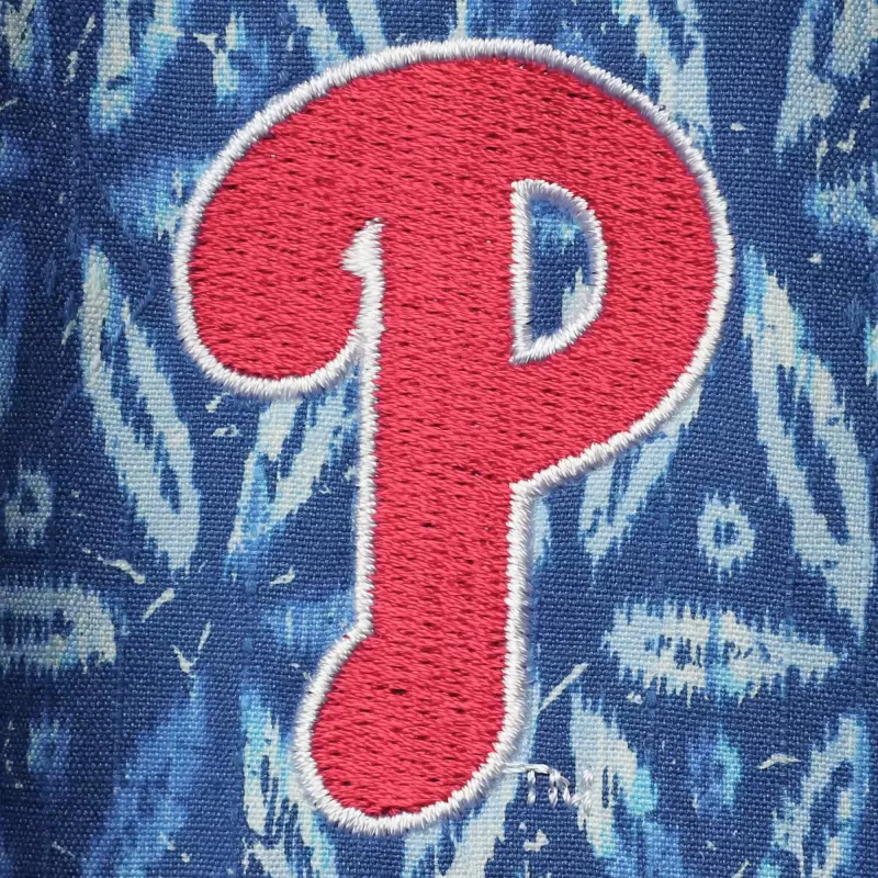 The Tommy Bahama Royal Philadelphia Phillies Barrie Batik Button-Up Shirt is a stylish way to show your support for the Philadelphia Phillies. This shirt features embroidered graphics, a full button front, a hem with side splits, and a left chest pocket. The sublimated pattern adds a touch of flair, making this shirt perfect for any Phillies fan. Made from a blend of silk and polyester, this shirt is both comfortable and durable. It’s also machine-washable, making it easy to care for. Whether you’re cheering on the Phillies at the ballpark or just relaxing at home, this shirt is sure to become a favorite.