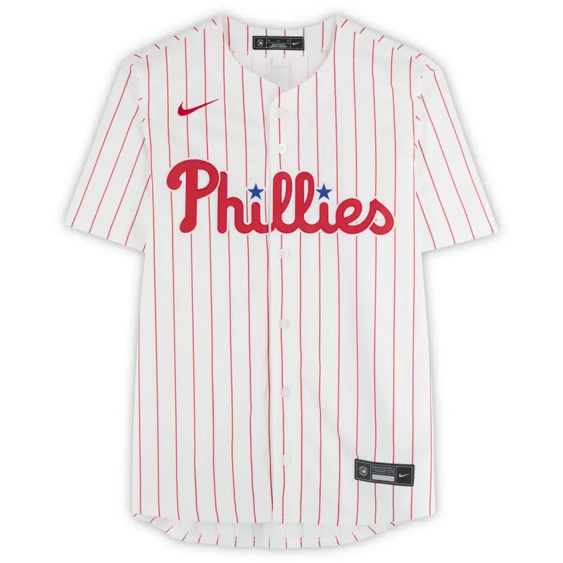Elevate your collection of Philadelphia Phillies memorabilia with this Trea Turner autographed White Nike Limited Jersey. With eye-catching team details and distinct signature of the MLB star, there’s no better way to commemorate one of your favorite players in the sport. Obtained under the auspices of Major League Baseball, it also includes an individually numbered, tamper-evident hologram that can be verified online to certify its authenticity.