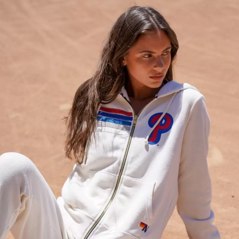 Bring laid-back, vintage vibes to your Philadelphia Phillies wardrobe with this Five-Stripe Tri-Blend Full-Zip Hoodie from the Aviator Nation x MLB collection. Aviator Nation is a 1970s-inspired California lifestyle brand that specializes in high-quality, hand-made garments that are perfectly distressed and ready for everyday wear. Each piece goes through a “breaking-down” process to create a broken-in feel that provides ultimate comfort right from the first wear. To add to the brand’s craftsmanship and care, this Five-Stripe Tri-Blend Full-Zip Hoodie is also decorated with Philadelphia Phillies graphics and hand-sewn stripes created with single-needle stitch work that gives each garment a unique, one-of-a-kind effect. If you’re looking to add both style and comfort to your game-day attire, this piece is the perfect choice.
